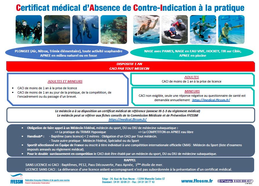 N'oubliez pas de faire renouveler vos CACI : Certificat médical d'Aptitude et de non Contre Indication à la plongée...